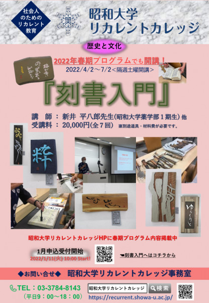 「刻書」は、昭和大学リカレントカレッジにおいて社会人のためのリカレント教育として採用され、「刻書」入門として講座の開講に至りました。